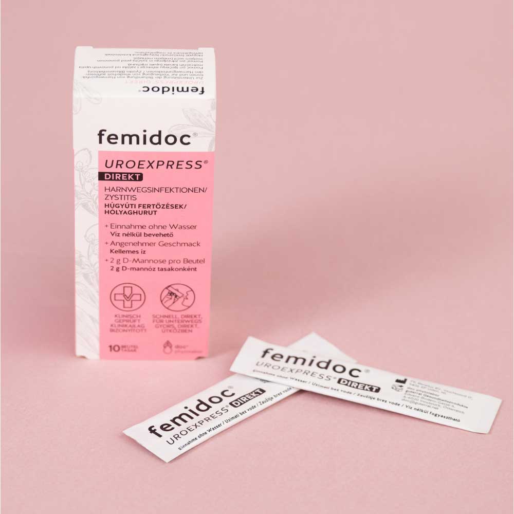 femidoc URO EXPRESS DIREKT je medicinski pripomoček, ki se uporablja kot hitra pomoč pri zdravljenju okužbe mehurja, ki jo povzroča bakterija E. coli, in tudi kot zaščita pred ponovnim vnetjem mehurja.