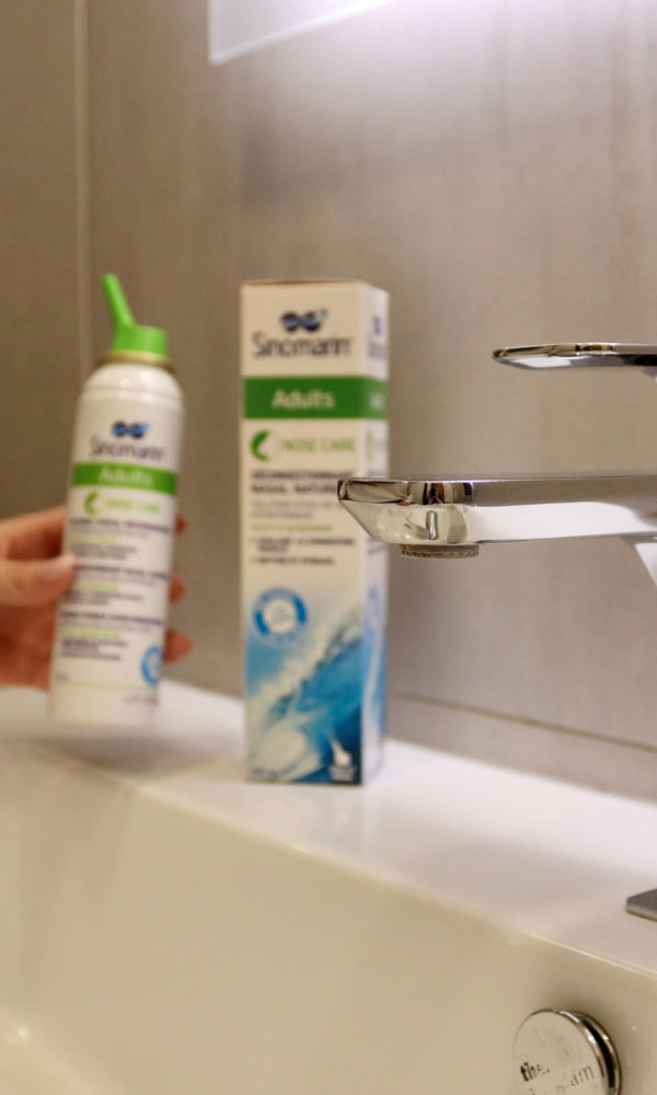 Za ohranjanje navlaženosti nosne sluznice sta pomembna dva koraka – ustrezna vlažnost zraka in higiena nosu. Za higieno nosu poskrbimo z vsakodnevnim izpiranjem nosu in nosne sluznice s hipertonično morsko vodo Sinomarin, ki: